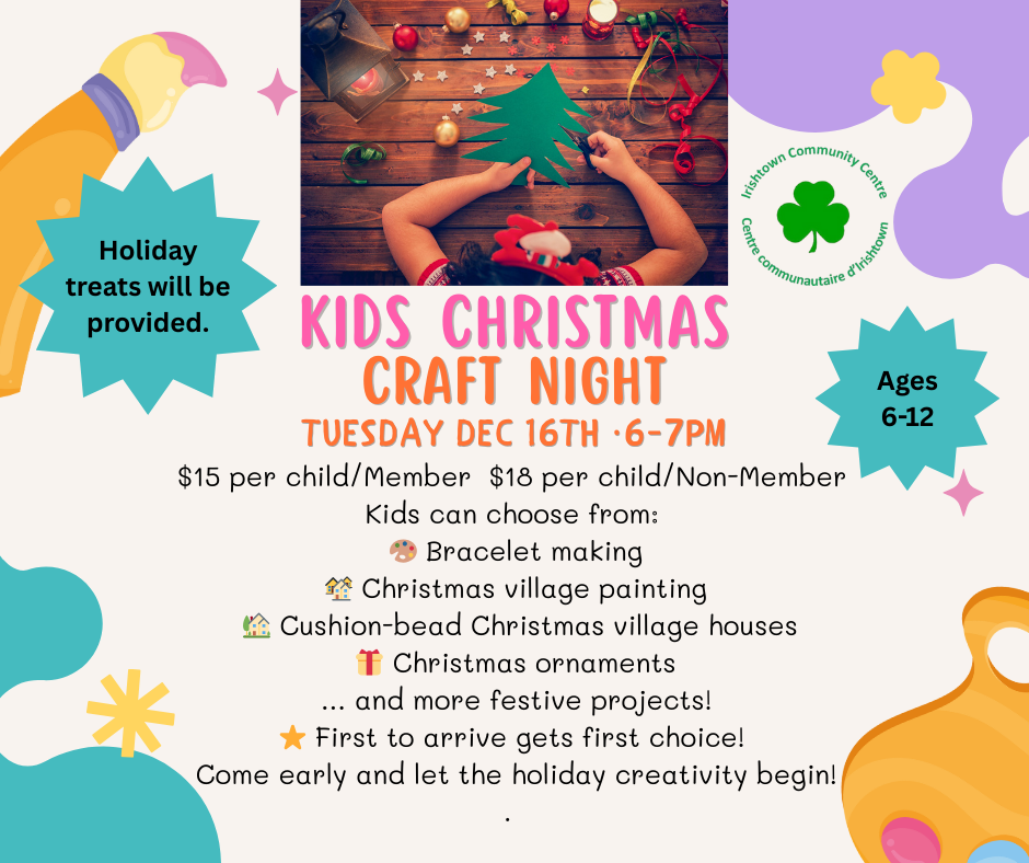 There is something for everyone at the Irishtown Community Centre. Check out our programs and upcoming events.