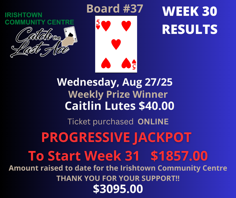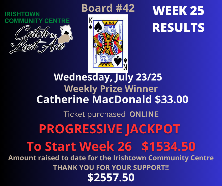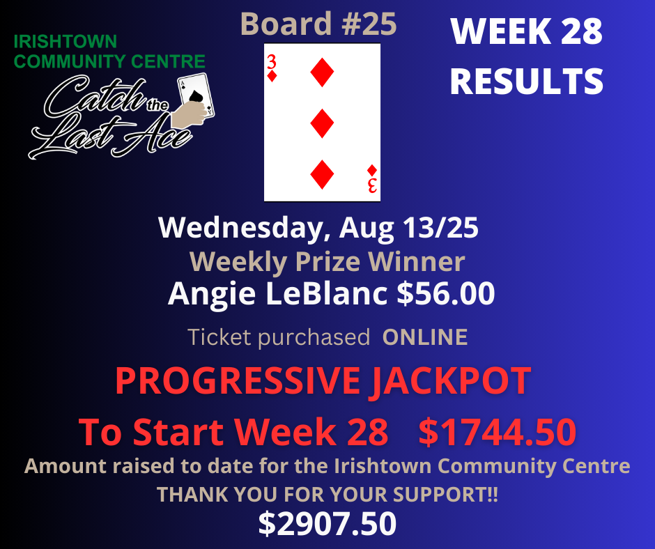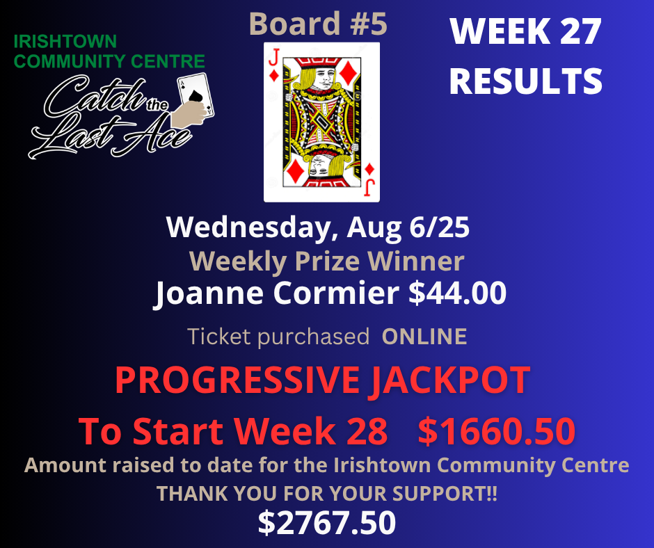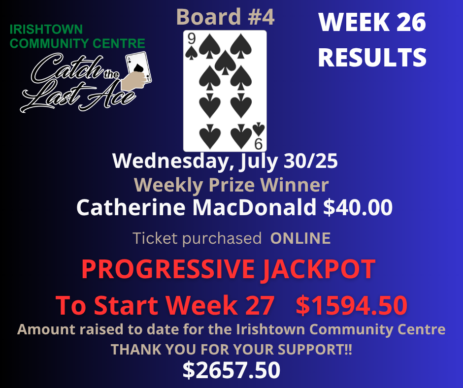 Join us weekly on Wednesdays at 6:00PM on Facebook Live for your chance to win and to support your community centre!