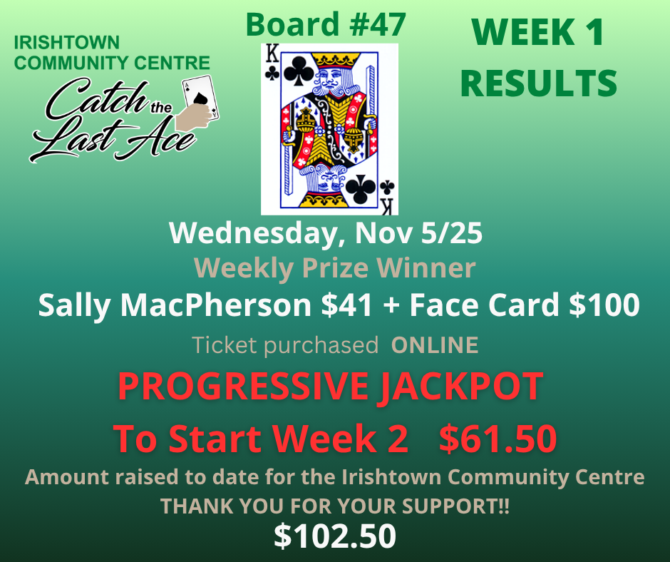 Join us weekly on Wednesdays at 6:00PM on Facebook Live for your chance to win and to support your community centre!