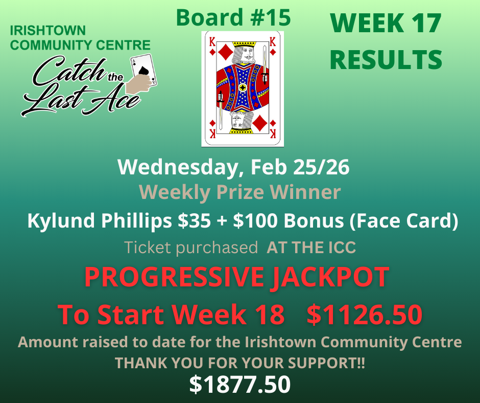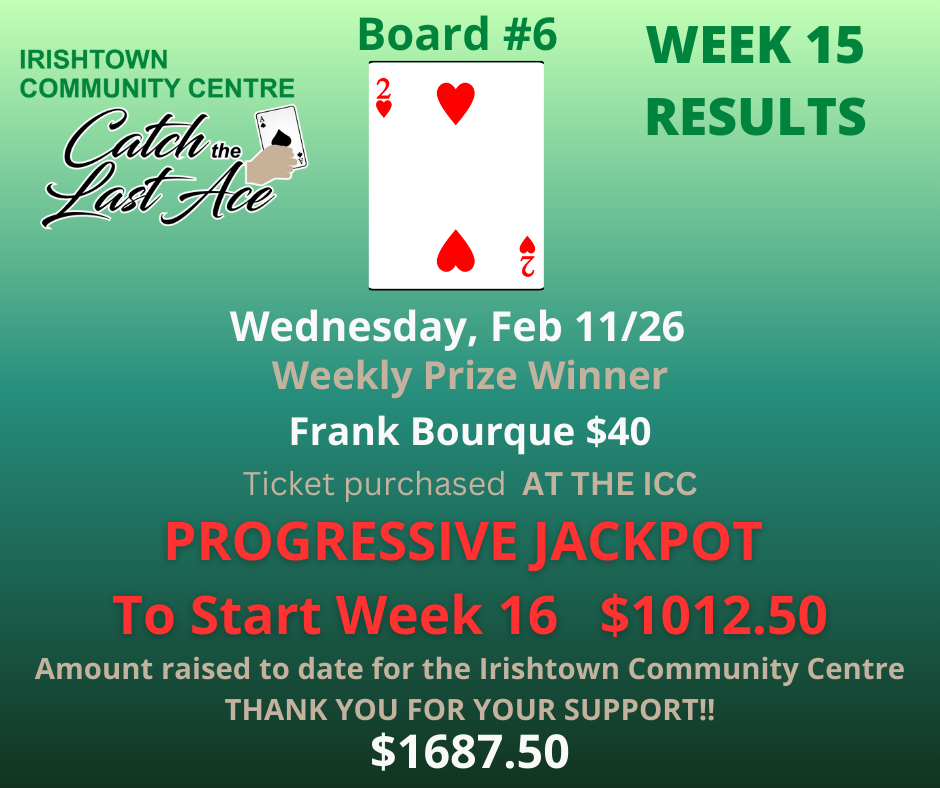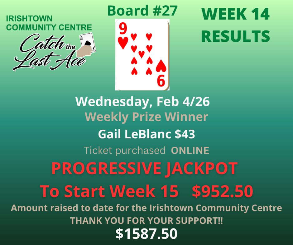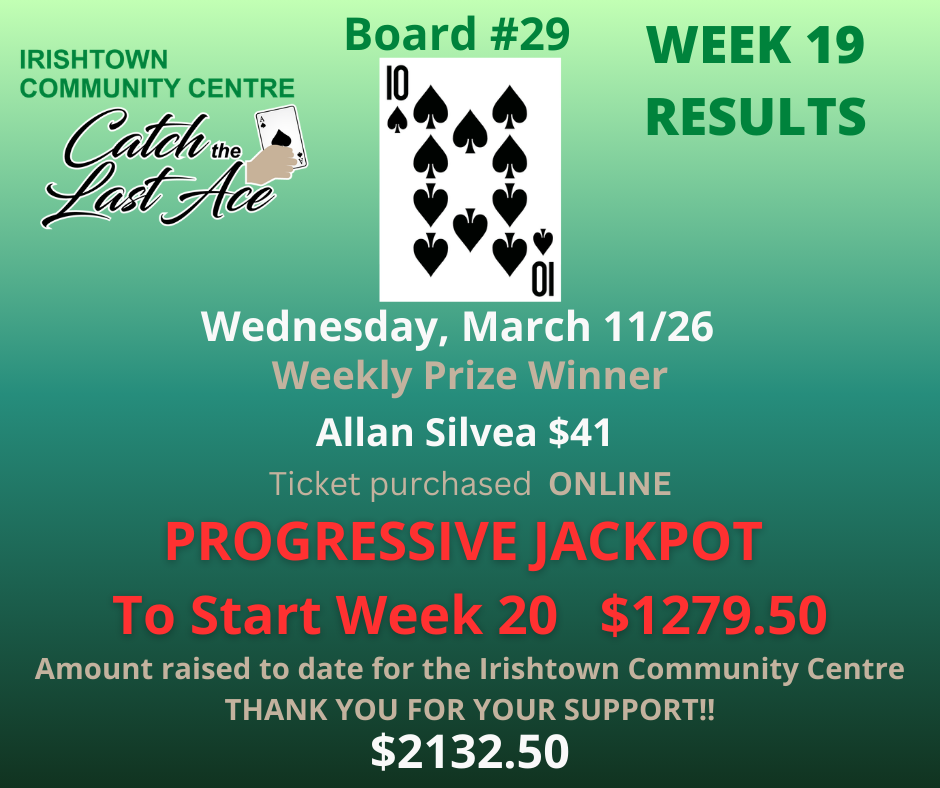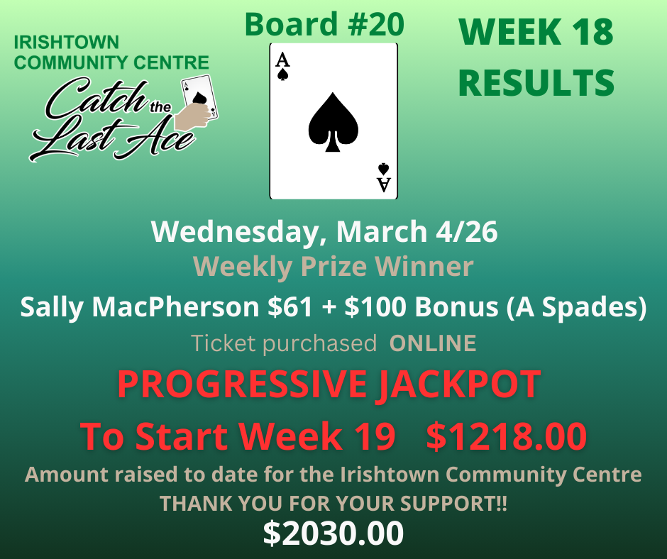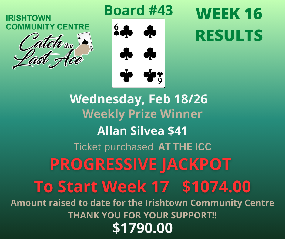 Join us Wednesdays at 6:00PM on Facebook Live for your chance to win and to support your community centre!